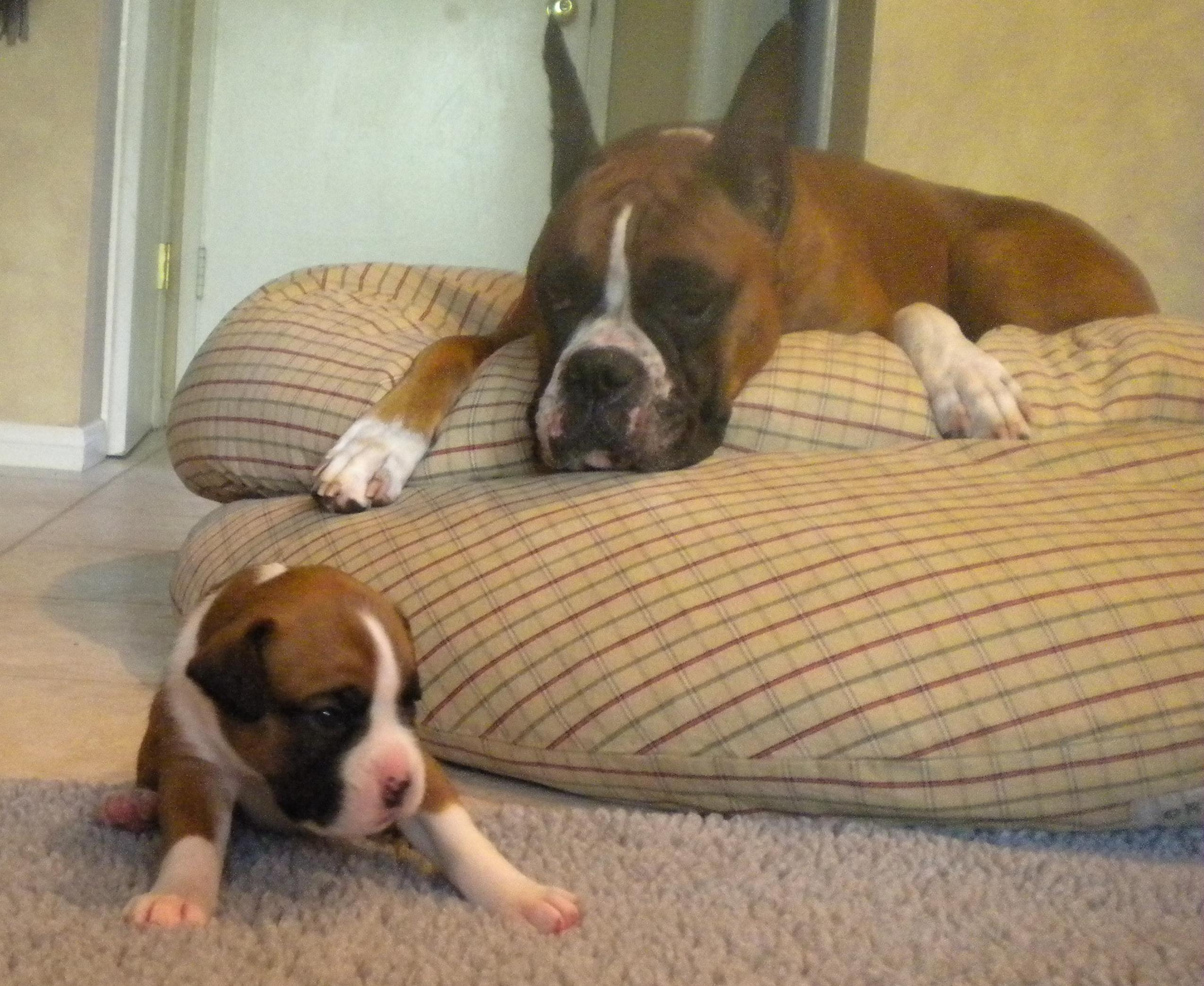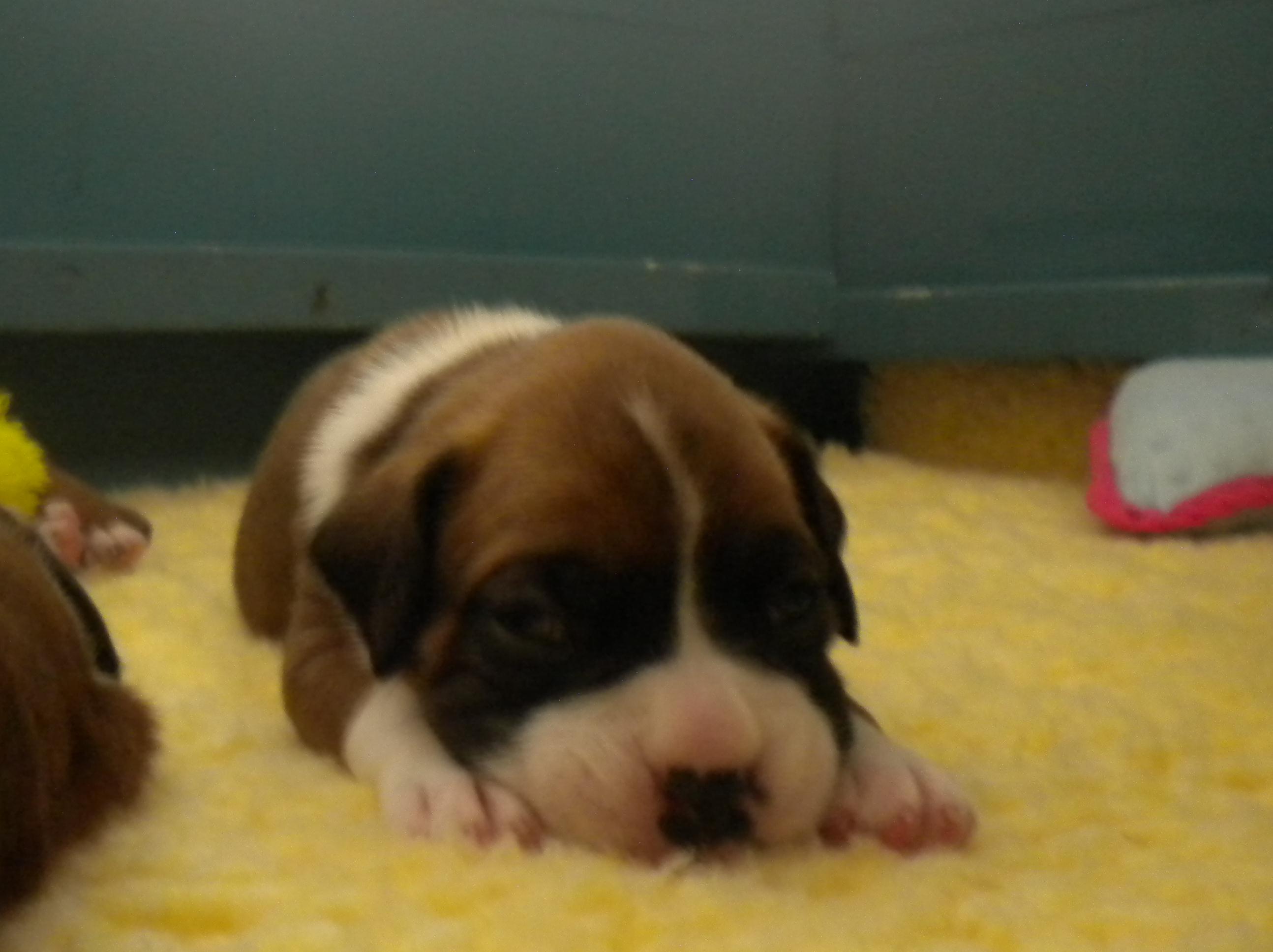 Bismark is an outstanding Boxer with a top pedigree.  He excels in true boxer type, temperament and health.   His wonderful temperament has endeared him to us.  He is everything a Boxer should be…Smart, happy go lucky, playful, gentle and beautiful.